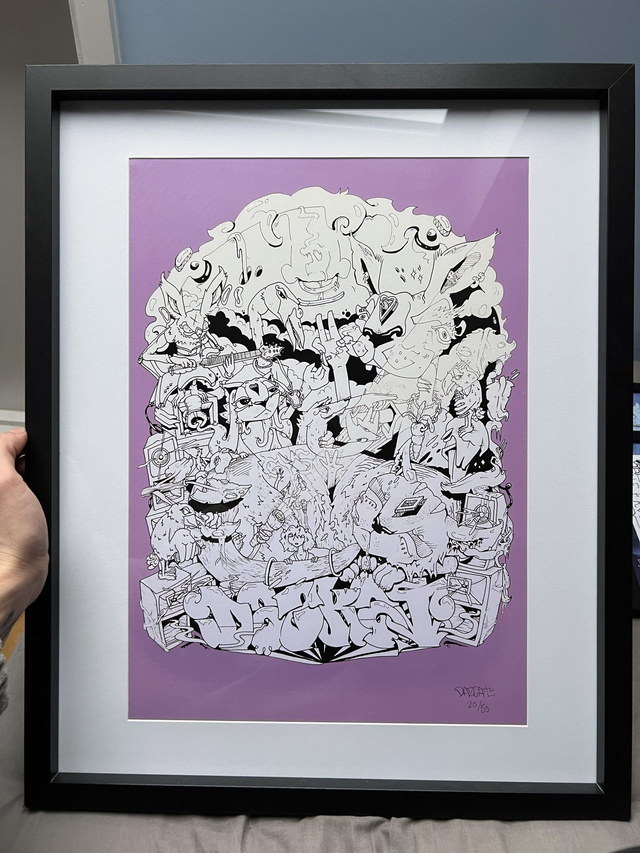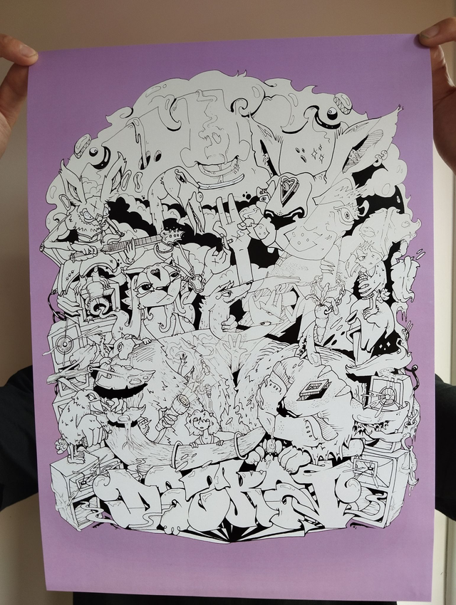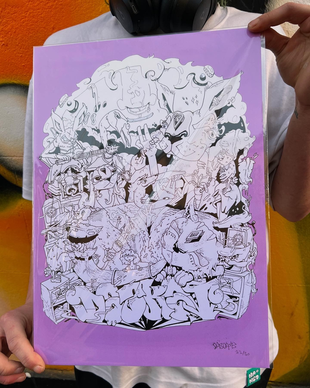 This crazy A3 print is hand drawn with pigment marker and felt tip and then digitally coloured, printed on heavyweight 300gsm card.